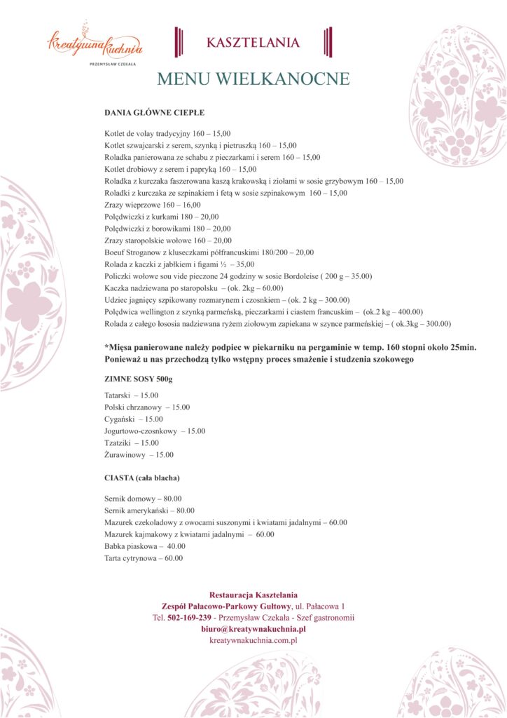 MENU DO POBRANIA W PDF: MENU WIELKANOCNE 2026 KREATYWNA KUCHNIA KASZTELANIA