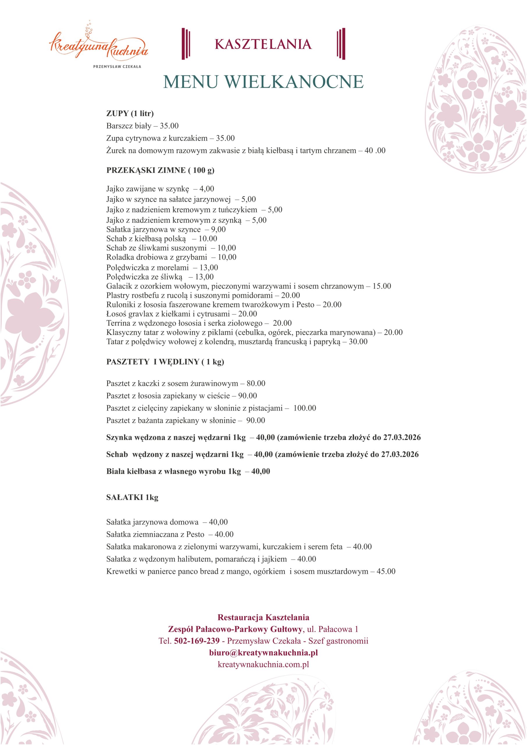 MENU DO POBRANIA W PDF: MENU WIELKANOCNE 2026 KREATYWNA KUCHNIA KASZTELANIA